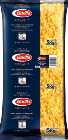 Τα Barilla Farfalle φτιάχνονται από ένα φύλλο ζύμης που κόβεται σε τετραγωνάκια και “τσιμπιέται” στο κέντρο η οποία ξαφνιάζει τον ουρανίσκο, μέσω της διαφορετικής υφής του πιο χοντρού κεντρικού τμήματος και των δύο άκρων: μια πραγματική απόλαυση για τους καλοφαγάδες. Από τα πιο χαρούμενα σχήματα στην κουζίνα, τα Farfalle, όπως οι πεταλούδες, πετούν από τη μία γεύση στην άλλη, και προσαρμόζονται σε πολλούς διαφορετικούς συνδυασμούς γεύσεων.