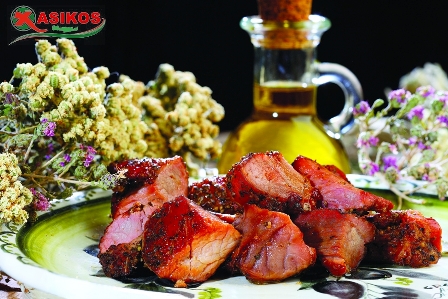 Χοιρινό κρέας μαριναρισμένο σε μείγμα μυρωδικών , μπαχαρικών του βουνού που σιγοκαπνίζεται και συσκευάζεται σε ελαιόλαδο για να φέρει στο τραπέζι μας τα ξυλομαγειρέματα του χωριού με όλες τις μυρωδιές και γεύσεις της Κρητικής παράδοσης.